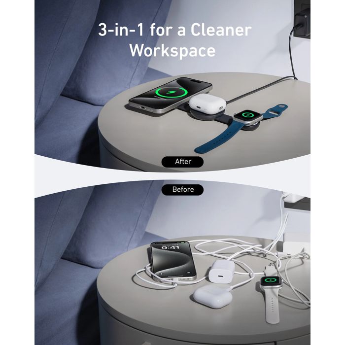 - Poenostavljeno (Po): Organiziran videz s 3-v-1 brezžičnim polnilnikom.